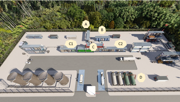 The plant processes used lube oil and industrial oils, using high vacuum molecular distillation technology. This process is based on three different modular skids.